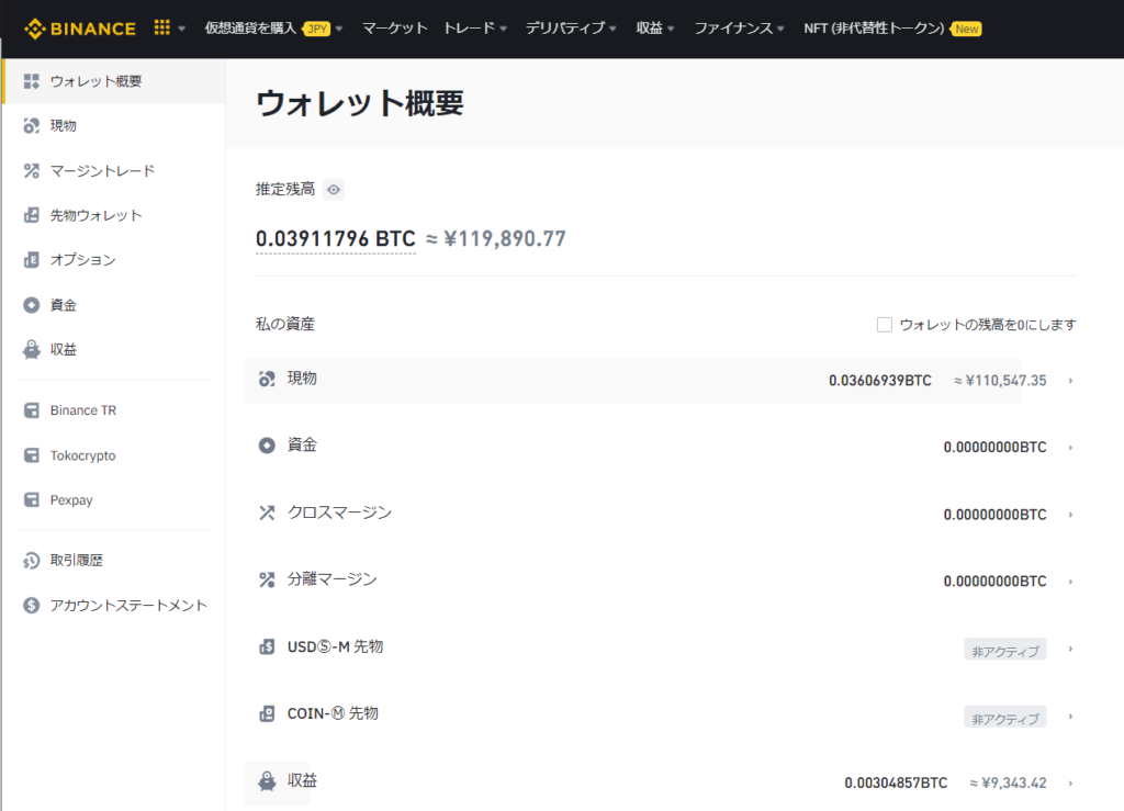 | バイナンス | 119,890円 | 97,405円 | +22,485円 | +123.08% |