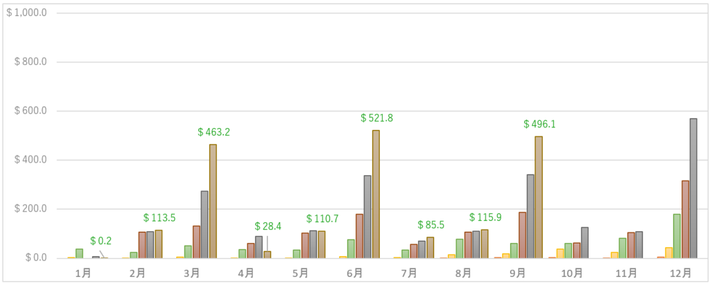 2022年9月の配当金/分配金報告です。今回の($)の果実はどこに実るでしょうか?
