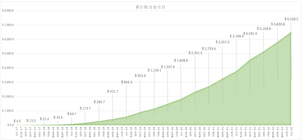 2017年8月から米国株で配当受け取りスタートをし、2022年9月で62個目になります。