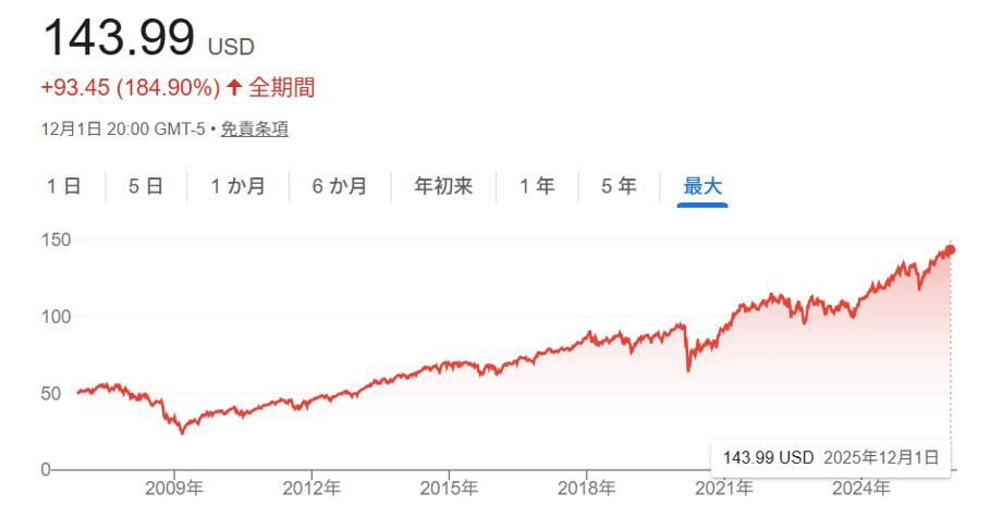 長期運用をしたいと考えている人にとって、経費率が低いVYMは魅力的なETFです。