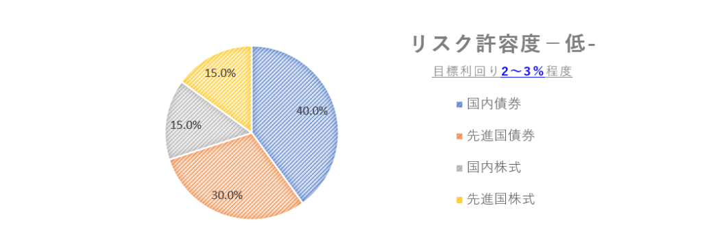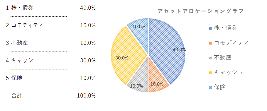 70%の中でそれぞれの資産クラスに分散させることを検討します。