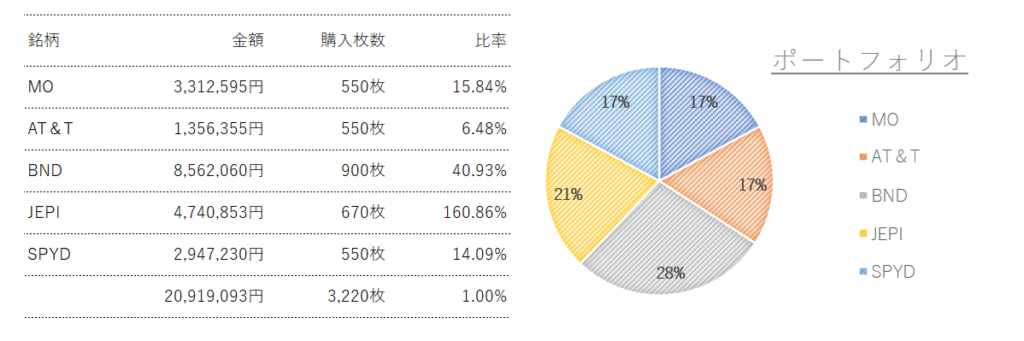 | SPYD(株式ETF) | 41.22$ | 1.98$ | 4.74% |