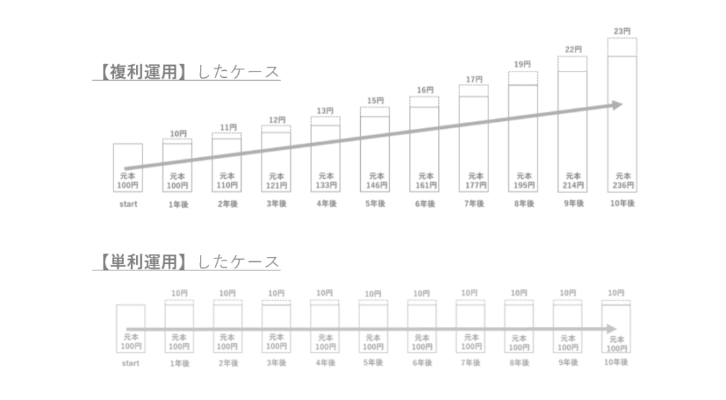 次に直接配当金とは異なりますが、株式運用を考える際に絶対知っておくべき力を確認したいと思います。それは【複利の力】です。