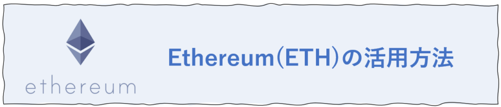 Ethereum(ETH) はビットコインと同様に支払い手段として利用されることがあります。ETHを持っている人同士で取引を行うことで手数料が安く、速やかな取引が可能です。