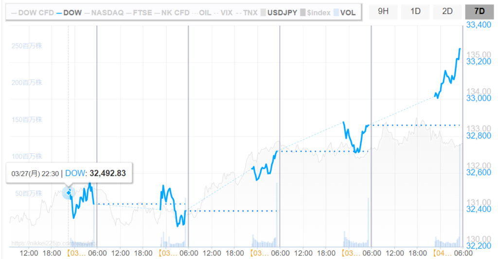 - 開始:「32,276.80ドル」※月曜日22:30(JST)