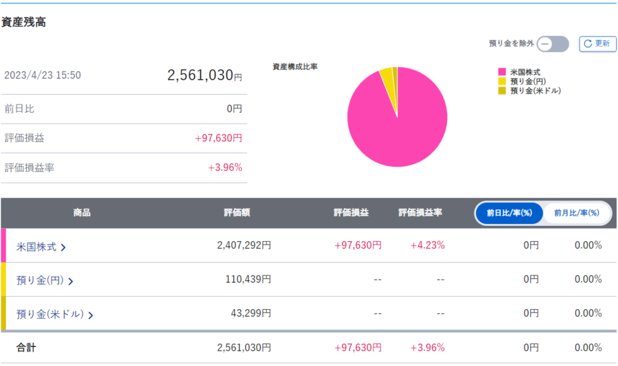 | 口座内(円) | 898,132円 | 898,132円 | ±0円 | ±100.00% |