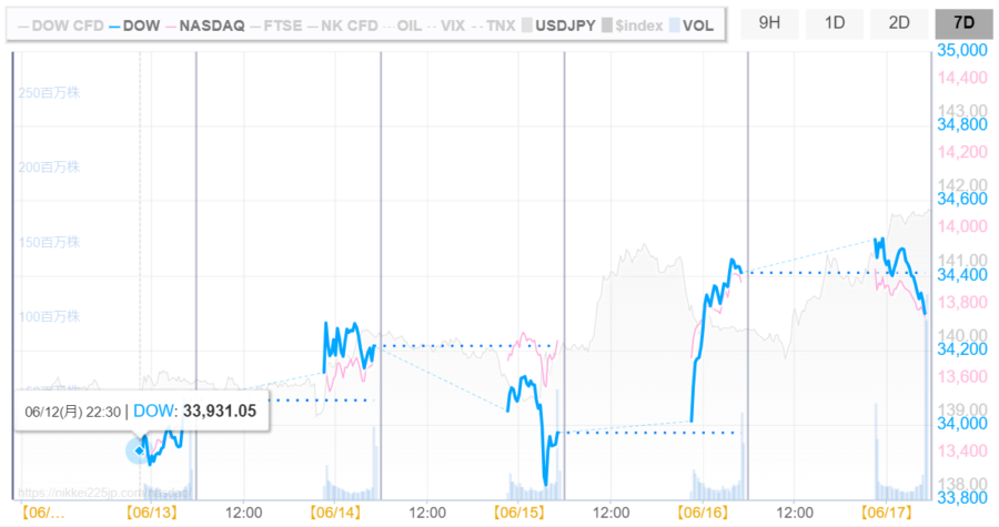 - 開始:「33,931.05ドル」※月曜日22:30(JST)
