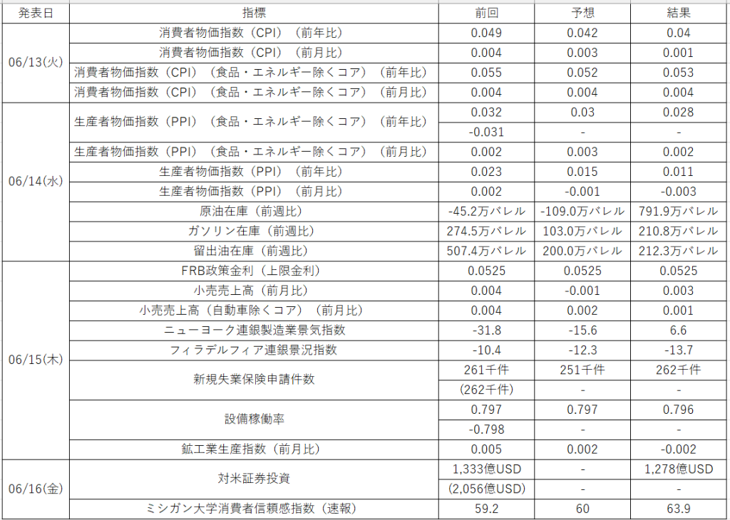 今週は 2023年6月2週目 ⇒ 2023年6月3週目 迄をまとめます。