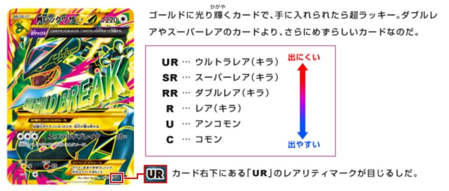 レア度はカードの入手難易度を表し、一般的に「UR」「HR」「SR」「RRR」「RR」「R」「UC」「C」の8種類より構成されていて、レアリティの高さも記述順になっています。レアリティの封入率・特徴などを詳細に紹介していきます。