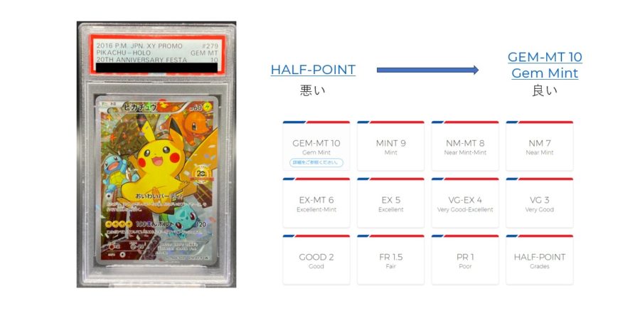 グレードにはPSAやBGSなどの評価機関があり、高い評価を受けたカードは市場でより高い評価と需要を受けます。