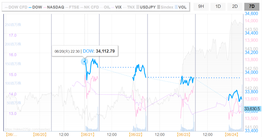 - 開始:「34,112.79ドル」※火曜日22:30(JST)
