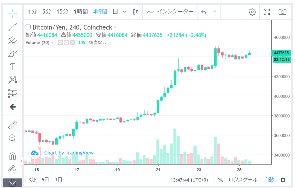ここ1週間は、約10%ほどの上昇傾向でした。