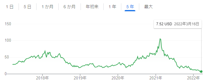 しかしながら年初来の下落を考え、5$付近は買いと判断し、