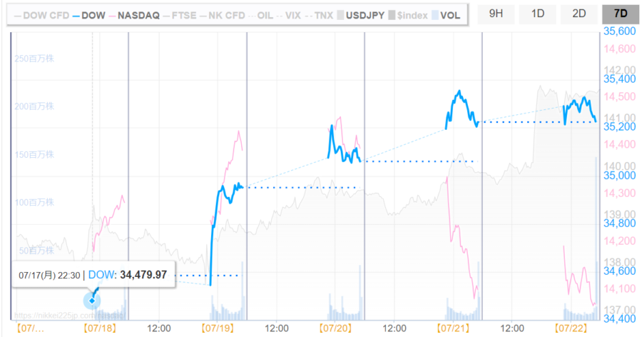 • 開始:「34,479.97ドル※月曜日22:30(JST)