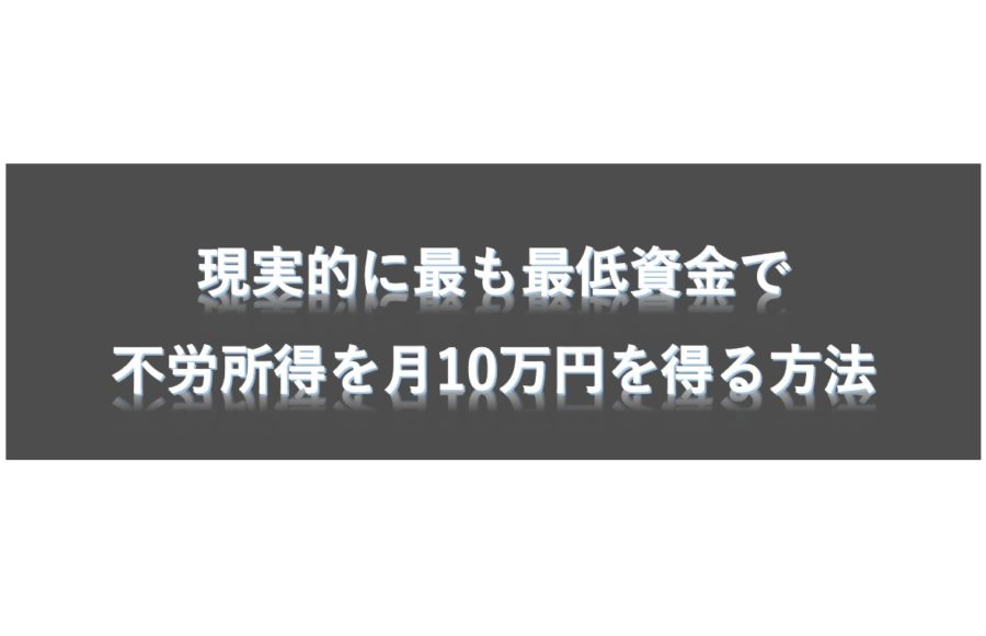 今回の不労所得を月10万円を考えた際に以下のプランを提唱しました。