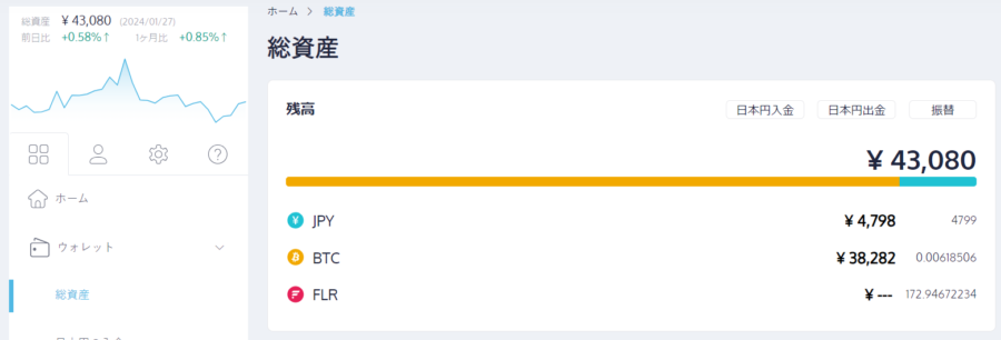 | コインチェック | 43,080円 | 43,078円 | +2円 | +100.00% |