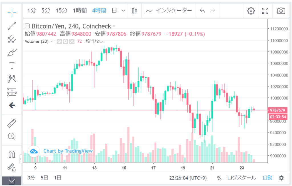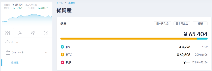 | コインチェック | 65,404円 | 67,170円 | ▼1,766円 | ▼97.37% |