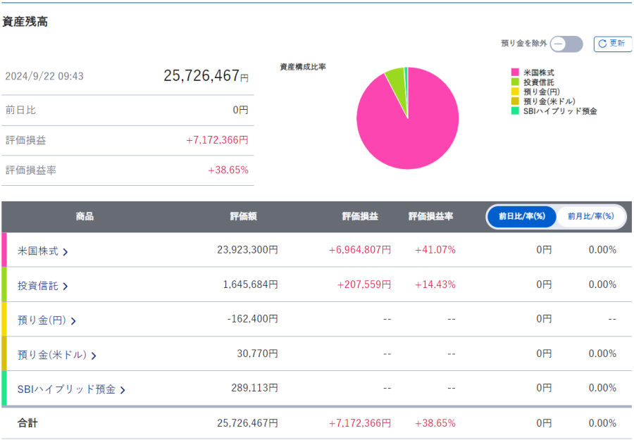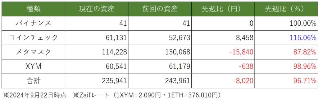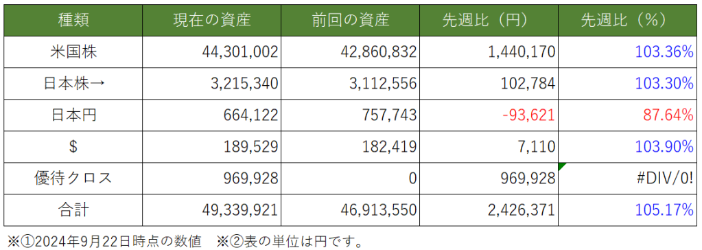 先週と比べの資産総額は約「▲241万円」で終了しました。