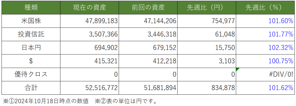今週は2024年10月2週目 ⇒ 2024年10月3週目 迄をまとめます。