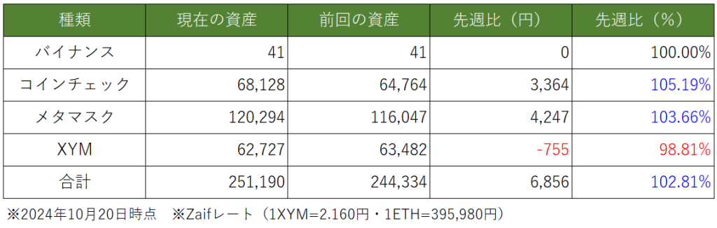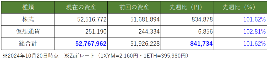 先週と比べの資産総額は約「▲84万円」で終了しました。