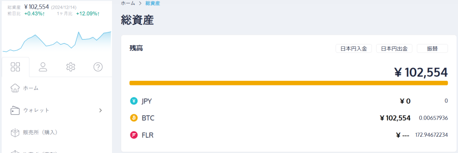 運用成績は株式と仮想通貨の記録になります。
