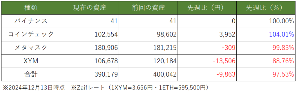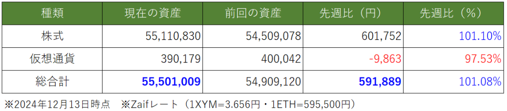 先々週と比べの資産総額は約「▲60万円」で終了しました。