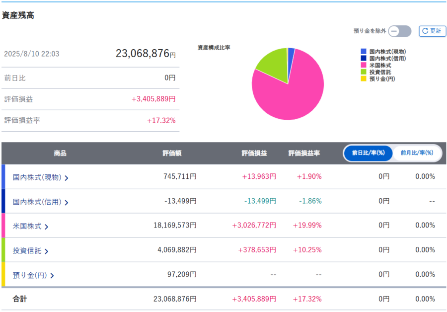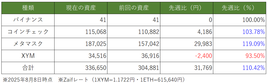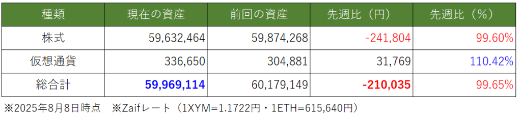 週間運用結果【~2025.8.8迄】今週の資産変動はどのような推移になったでしょうか。