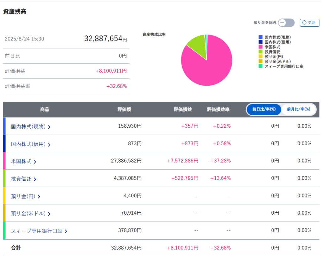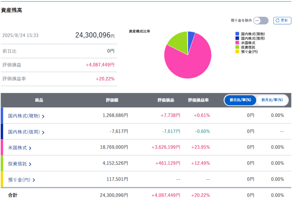 まずは証券口座内のまとめです。