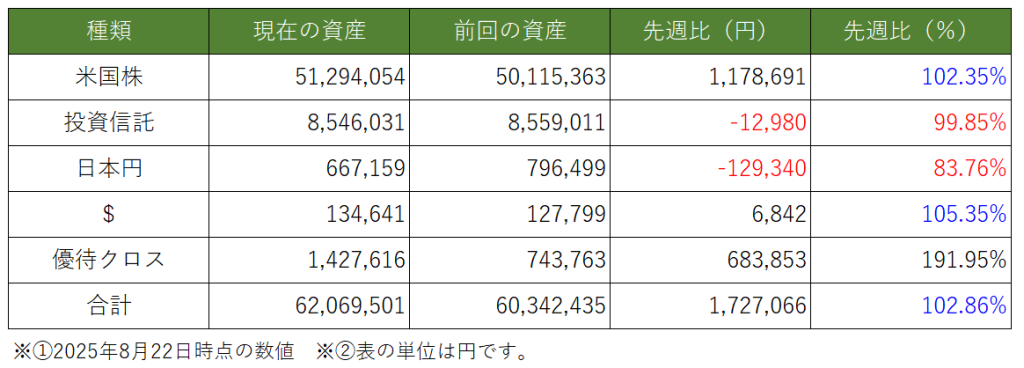 今週も資産推移の記録を残すと共に、これから米国株投資を検討している人や、既に株式投資を始めている人への励みになれば思います。