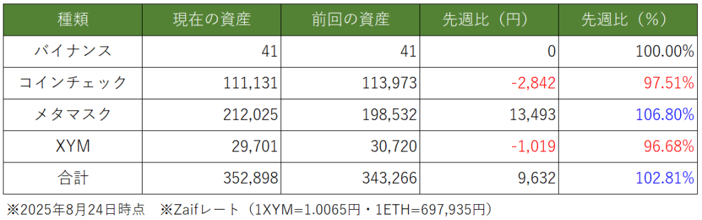 今週は 2025年8月3週目 ⇒ 2025年8月4週目 迄をまとめます。
