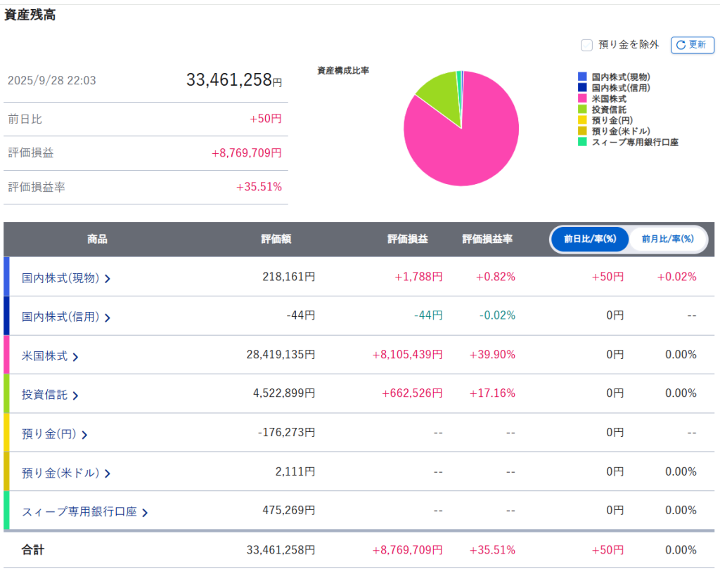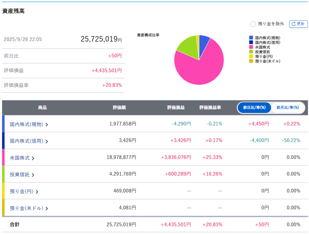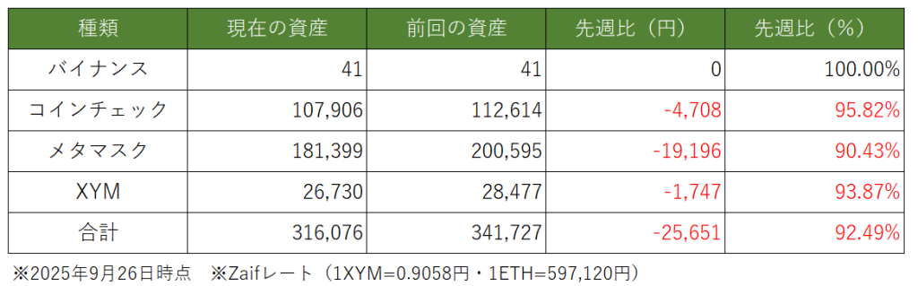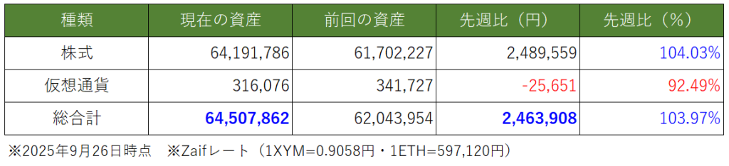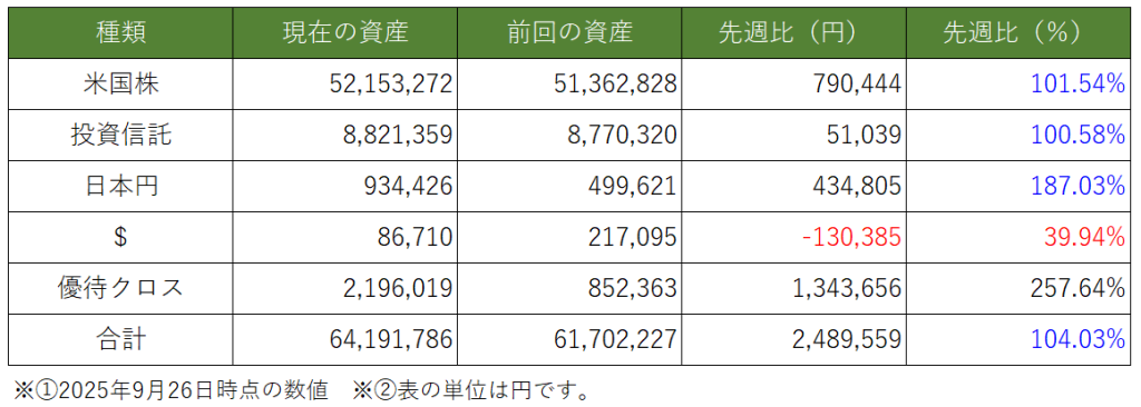 週間運用結果【~2025.9.26迄】今週の資産変動はどのような推移になったでしょうか。
