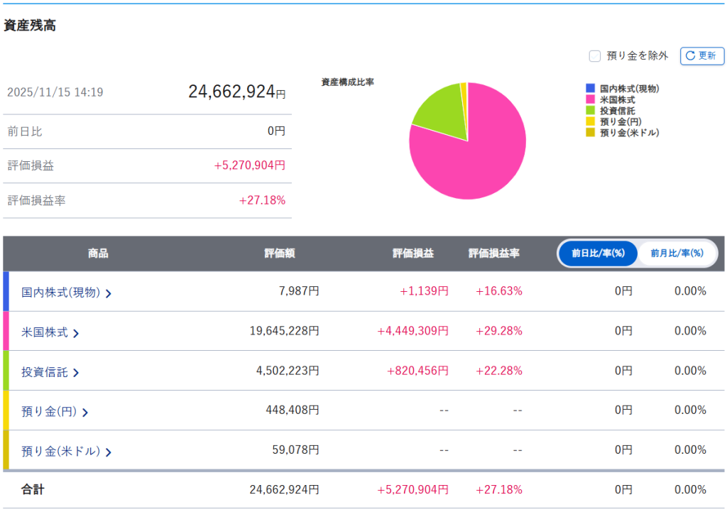 まずは証券口座内のまとめです。
