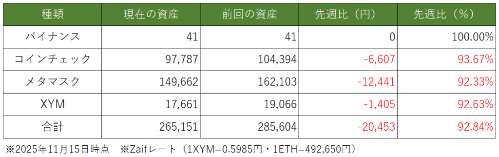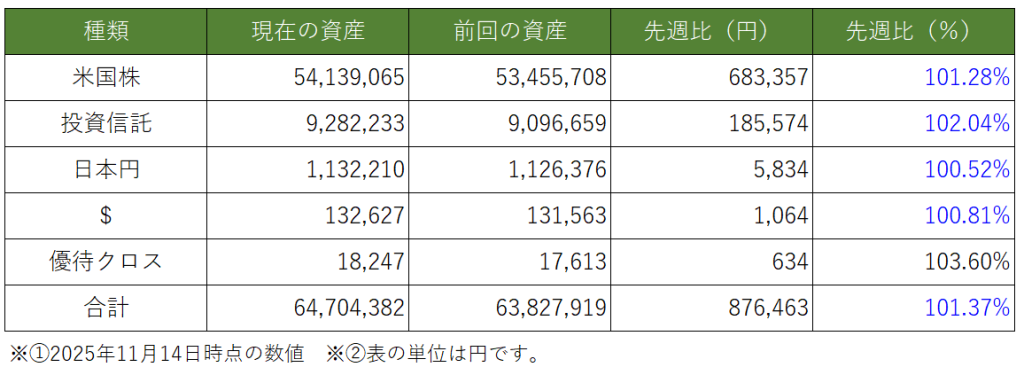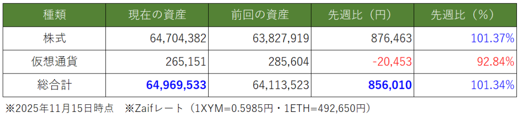 今週は1週間分の資産推移になります。