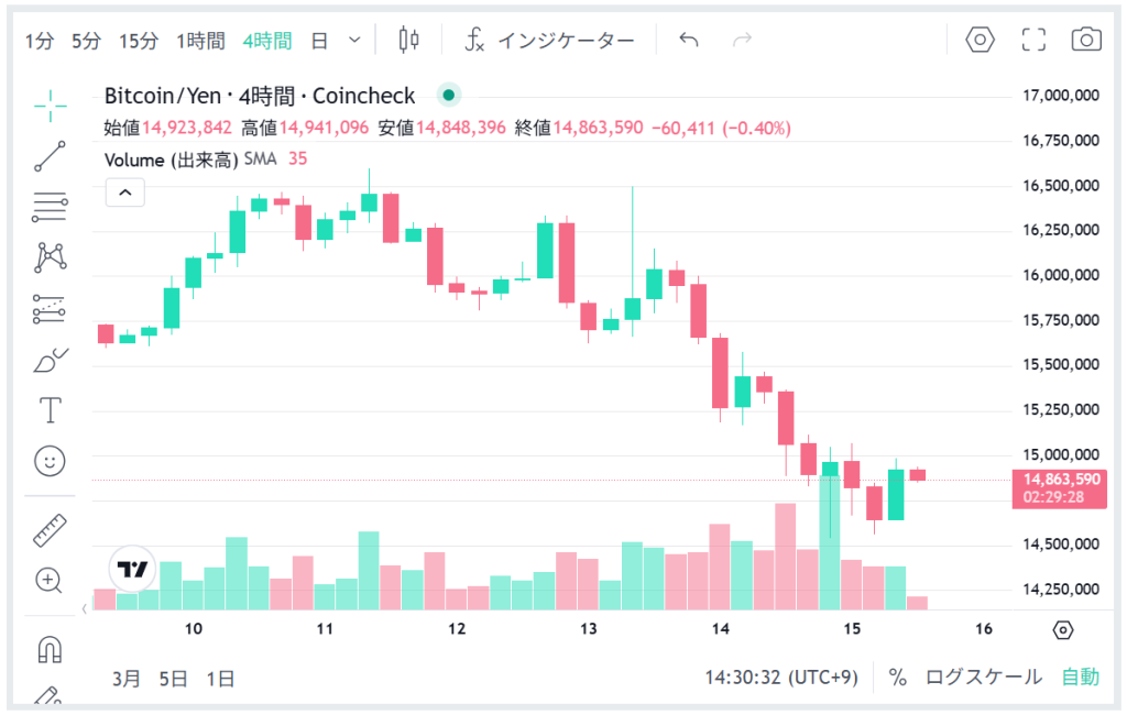 今週は久々の1BIT=1400万円台に突入しましたね。