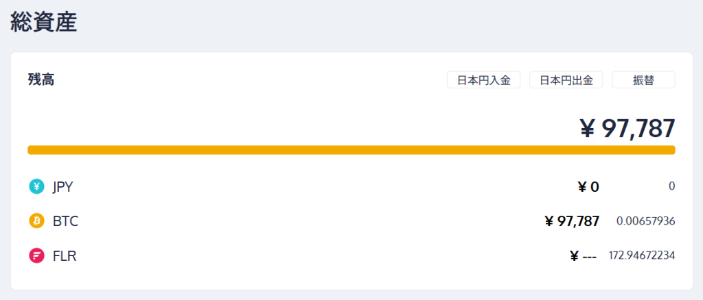 BITコインに比例して資産額は減少です。