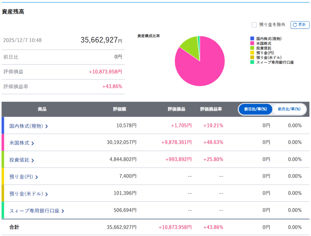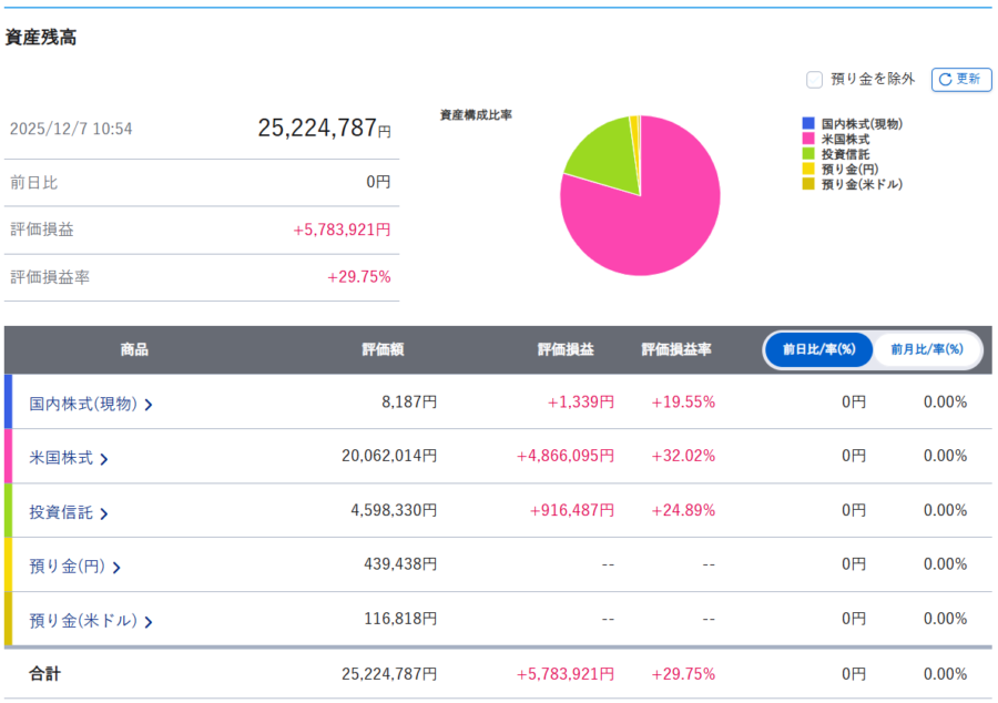 まずは証券口座内のまとめです。