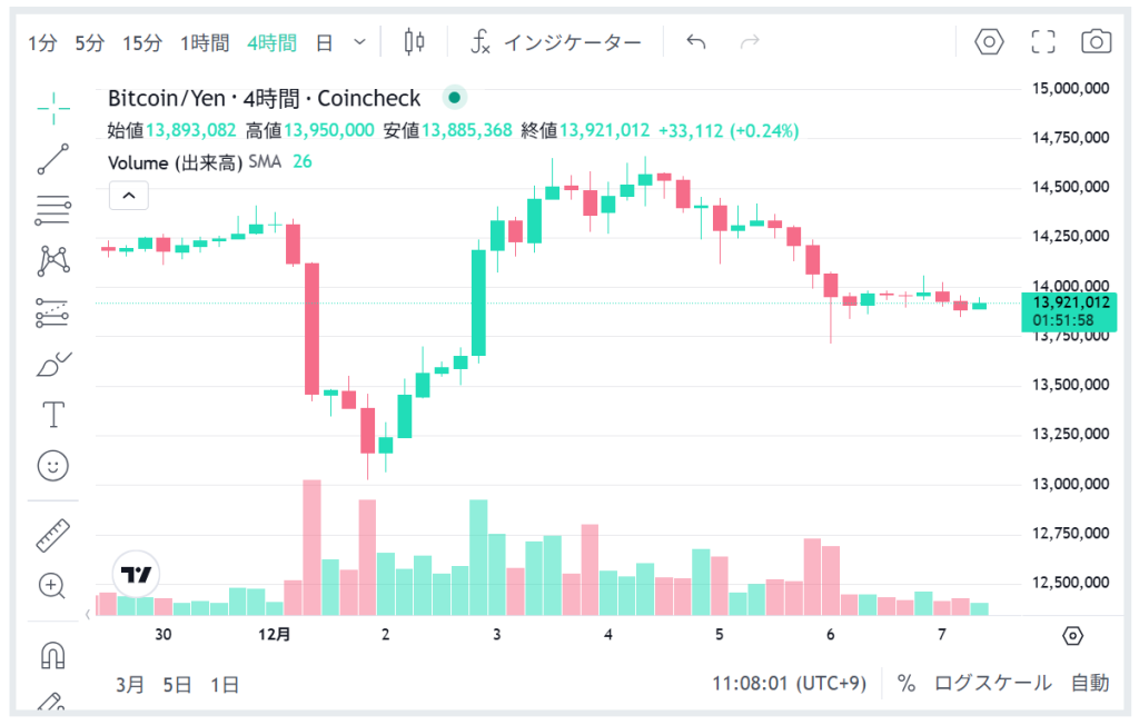 ブログ執筆時点では1BIT=1400万円前後ですね。