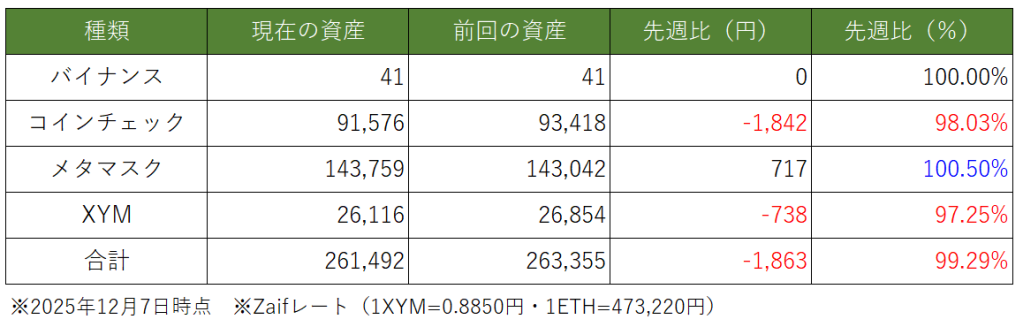 今週は1週間分の資産推移になります。