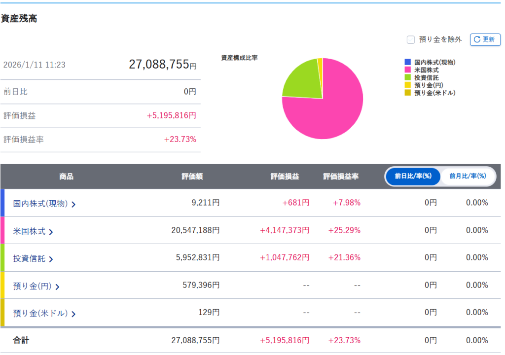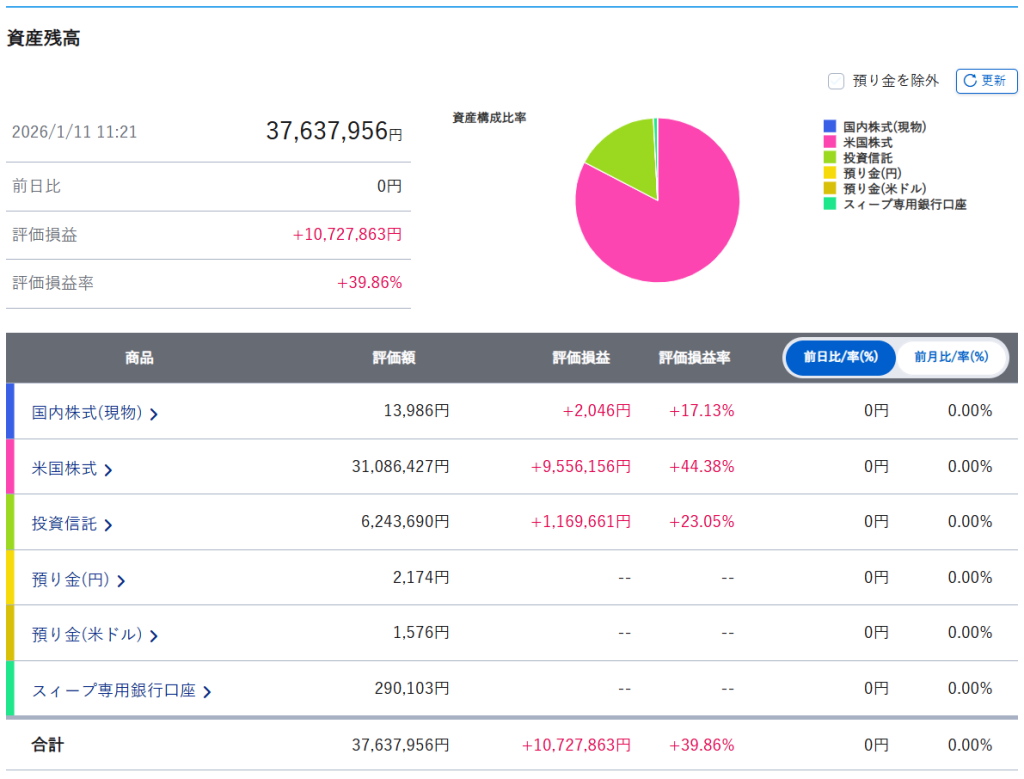 まずは証券口座内のまとめです。