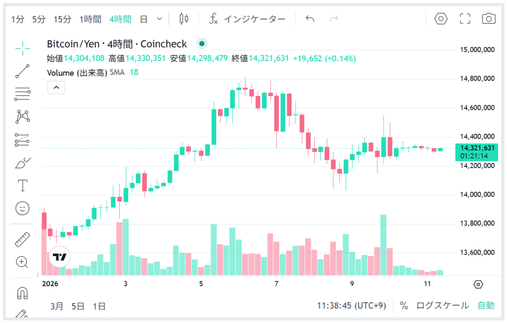 年末年始の中で1bit=1400万円を超えてきましたね。