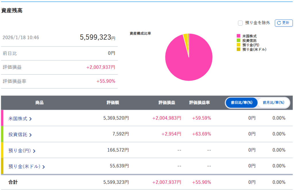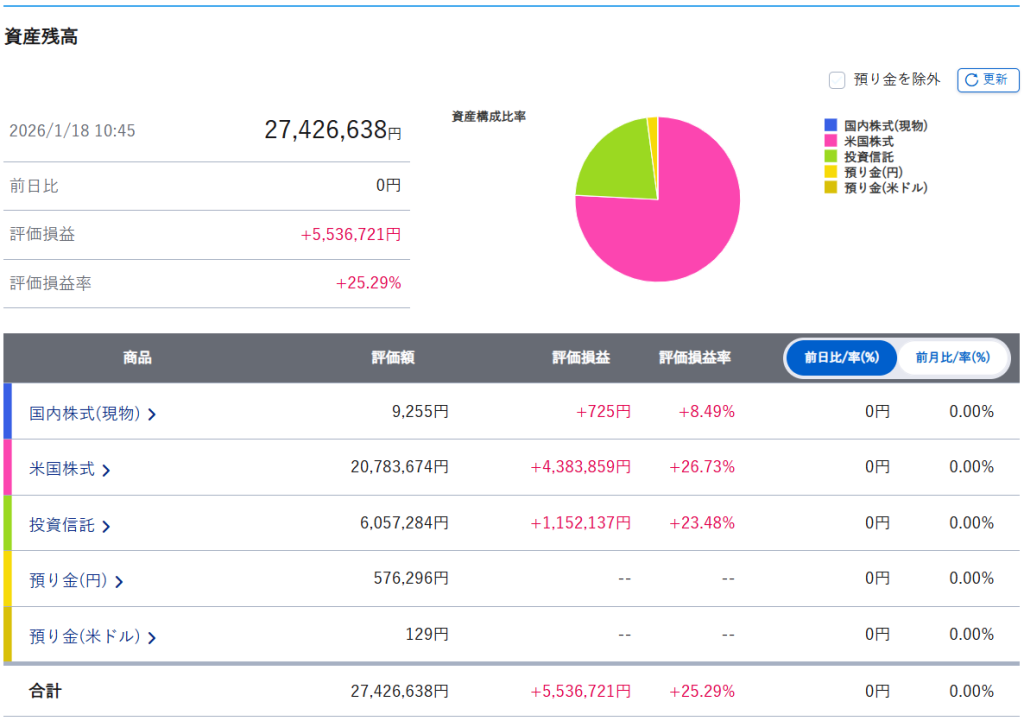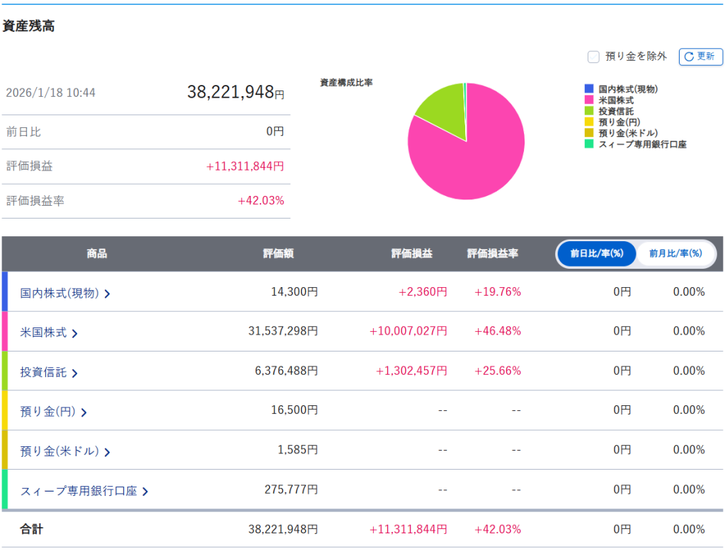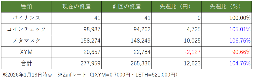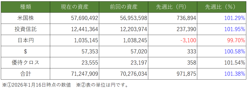 週間運用結果【~2026.1.16迄】今週の資産変動はどのような推移になったでしょうか。