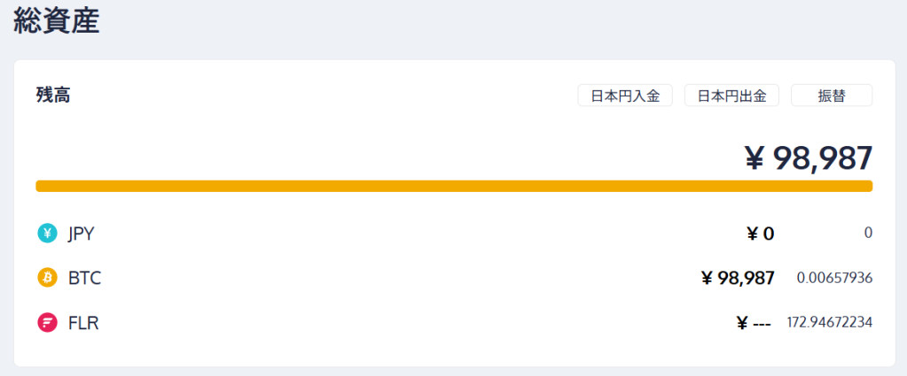 BITコインに比例して資産額は減少です。