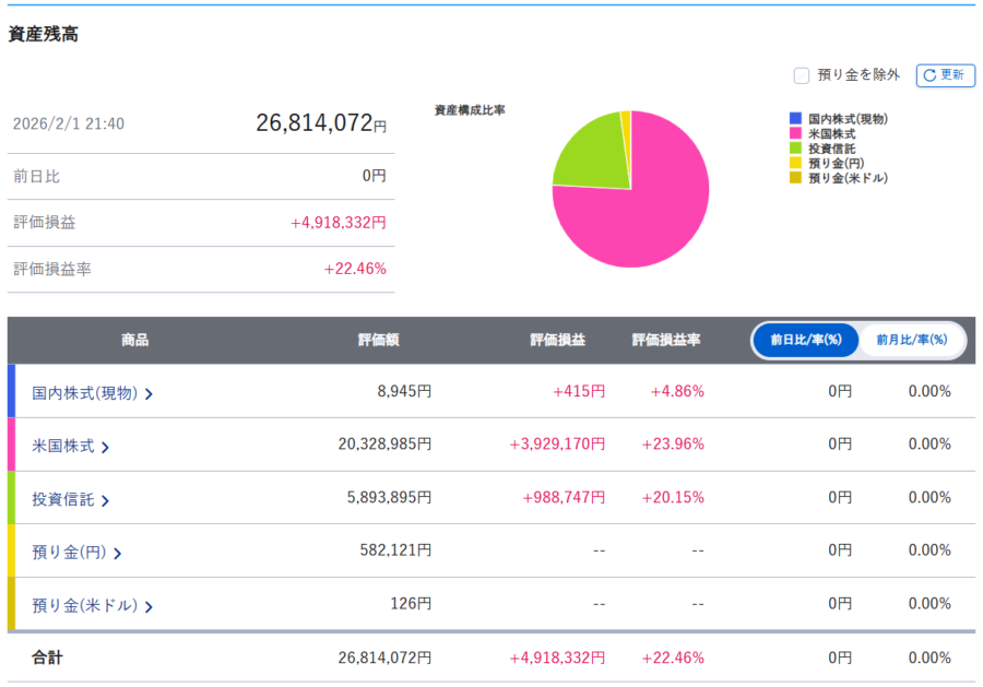 まずは証券口座内のまとめです。
