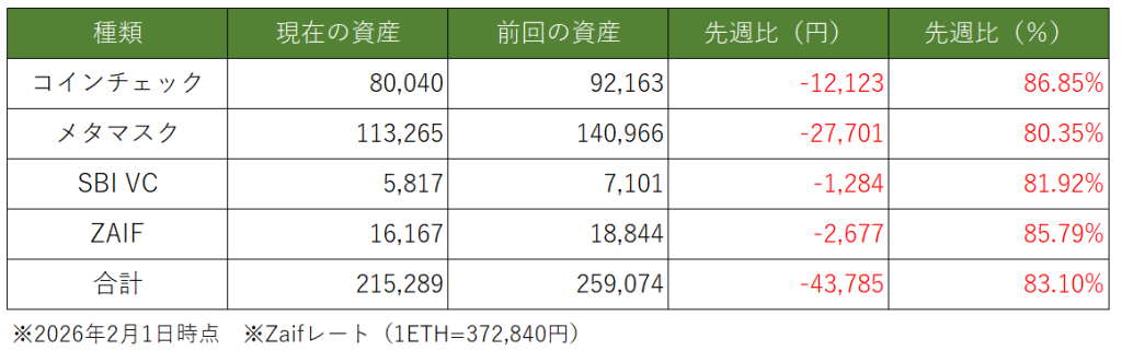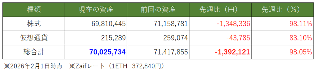 今週は約「▼140万円」下落をしています。