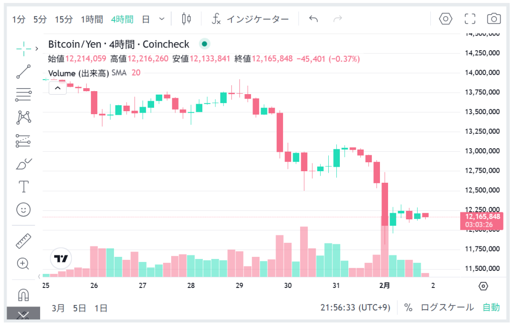 今週は割と急落をしており、1bit=1200万円を切るタイミングもでてきました。