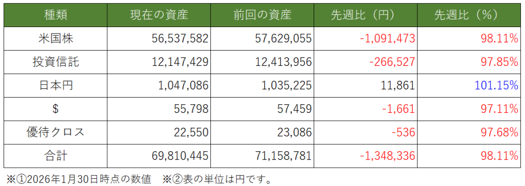 今週も資産推移の記録を残すと共に、これから米国株投資を検討している人や、既に株式投資を始めている人への励みになれば思います。