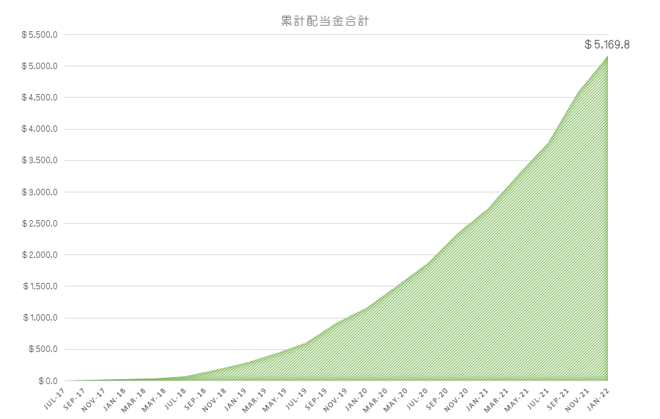 2017年8月から米国株で配当受け取りスタートをし、2022年4月で57個目になります。