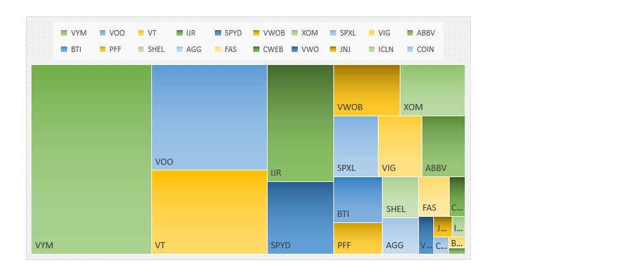 ポートフォリオの大半をVYM・VOO・IJRあたりが占めているため、