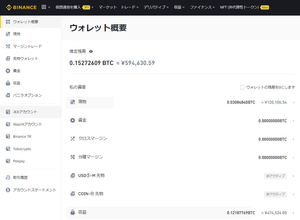 メインの口座はバイナンスを使っており、平常時にはバイナンスアーンという、仮想通貨版の定期預金みたいなので資産の増加を図っています。