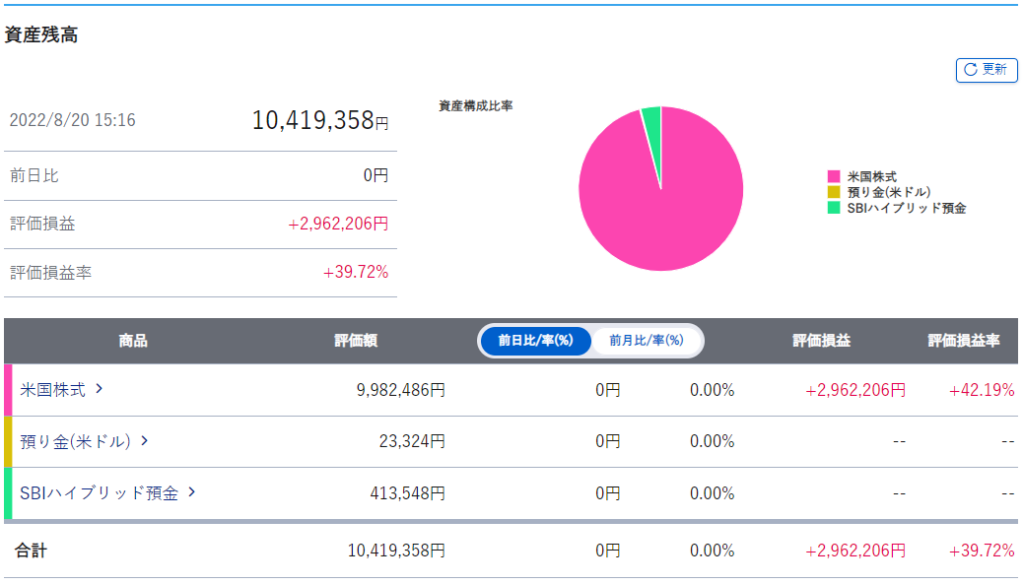 | 証券口座内日本円 | 739,891円 | 739,891円 | ±0円 | ±100.00% |